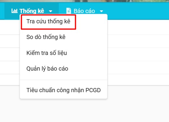 Bước 1: Vào Thống kê -> Tra cứu thống kê