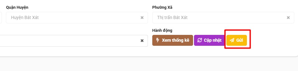 Bước 5: Bấm nút Gửi sau khi chốt số liệu để gửi số liệu lên cấp Phòng giáo dục tổng hợp