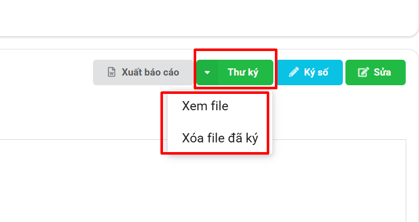 Bước 8: Khi ký xong sẽ hiện chức vụ vừa ký. Tại đây, Thầy/Cô có thể xem file đã ký hoặc ký lại bằng các bấm nút Xóa file đã ký