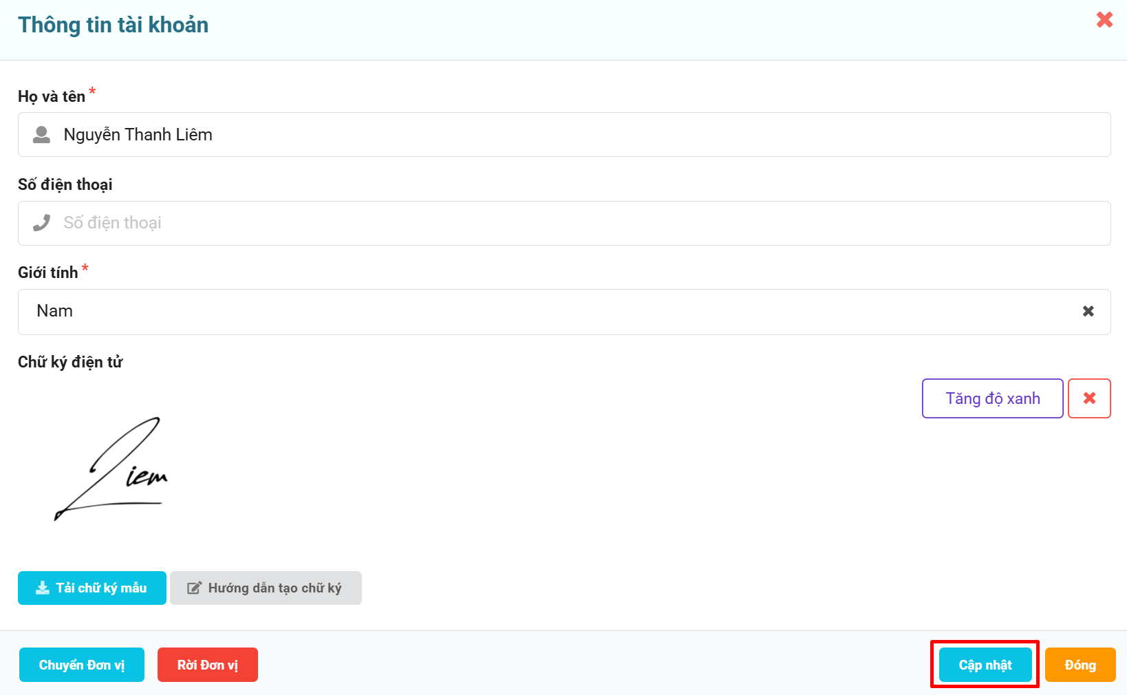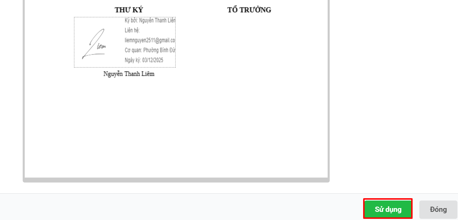 - Ký số: sử dụng chữ ký số mà Thầy/Cô đã được cấp bởi ban cơ yếu Chính Phủ hoặc đăng ký mua từ các đơn vị cung cấp chữ ký số.