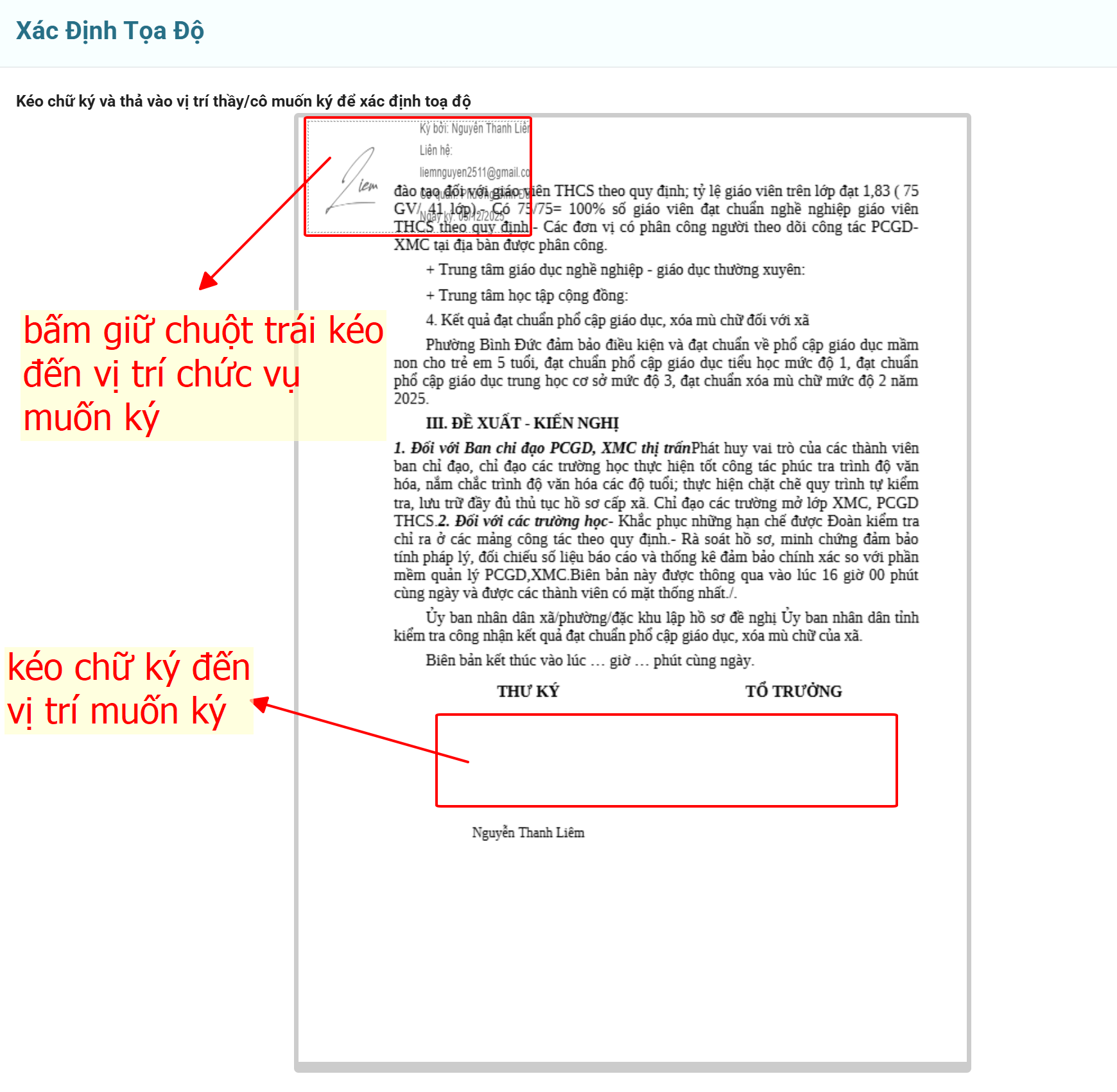 Bước 5: Bấm giữ chuột trái kéo thả đến vị trí chức vụ muốn ký