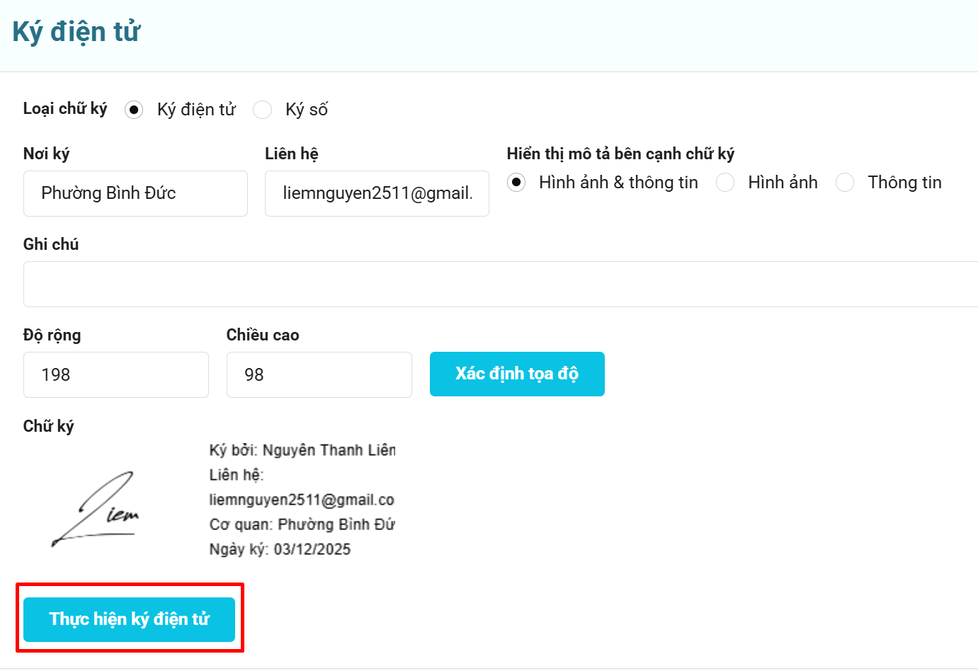 Bước 7: Bấm nút Thực hiện ký điện tử