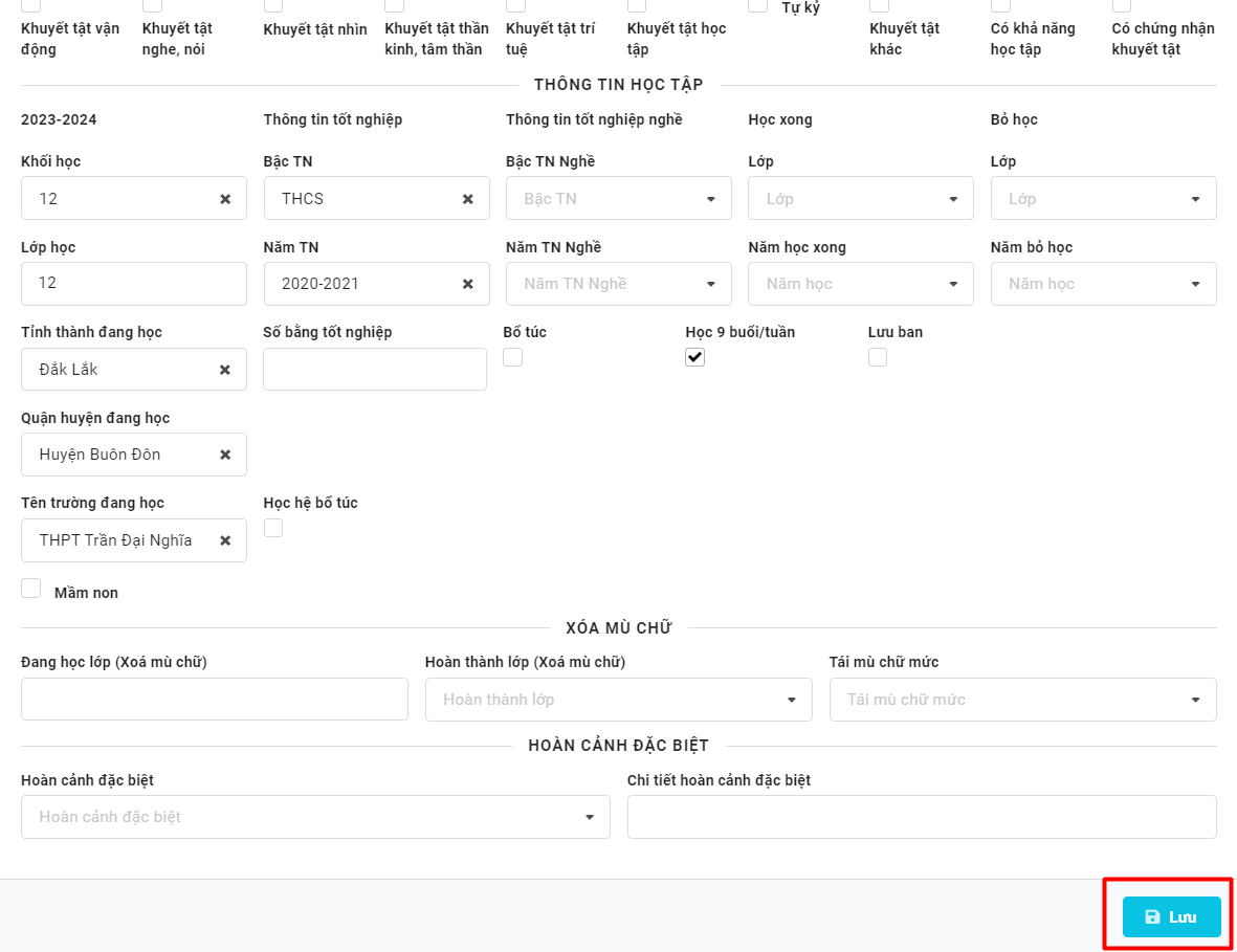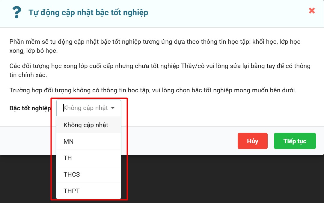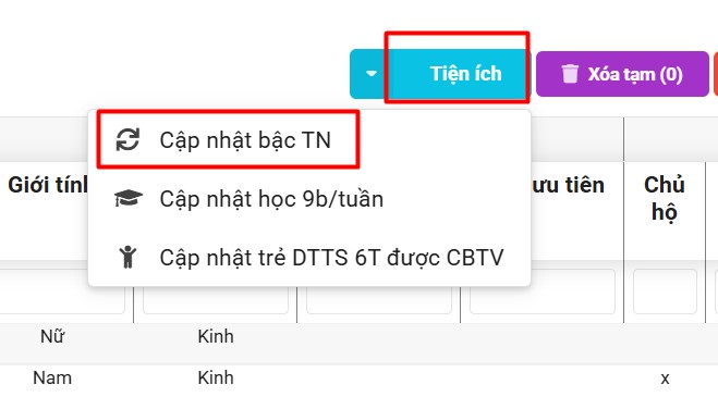 Bước 3: Chọn bậc TN mong muốn cho những đối tượng không có thông tin học tập.