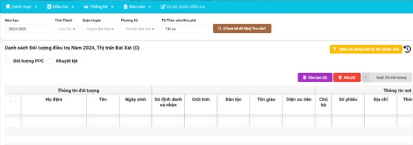 Trong quá trình lọc tìm đối tượng thì Thầy/Cô có thể check vào ô Đối tượng PPC để loại bỏ những đối tượng khuyết tật, chuyển đi.