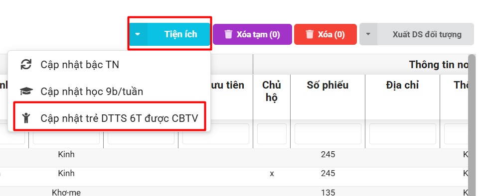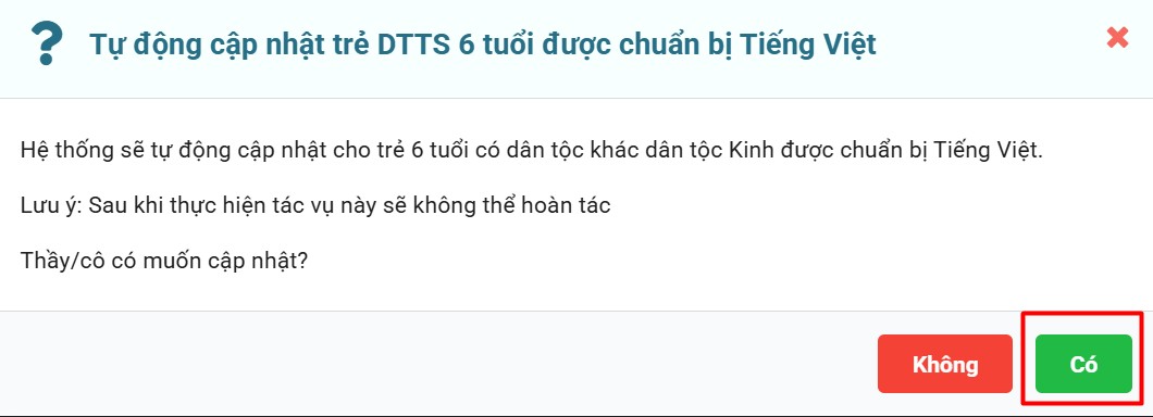 8. Tự động cập nhật trẻ 6 tuổi dân tộc được chuẩn bị Tiếng Việt