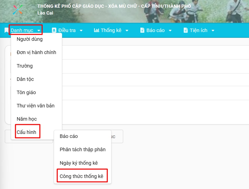 Bước 1: Bấm vào Danh mục > Cấu hình > Công thức thống kê