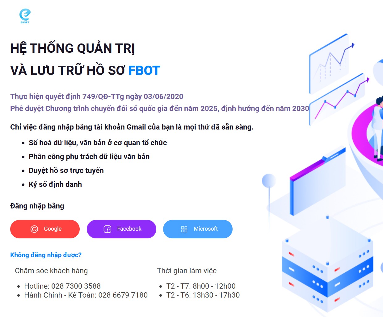 Bước 1: Truy cập vào đường dẫn http://fbot.xbot.com.vn hoặc trên giao diện phần mềm Elibot bấm vào nút FBOT ở góc phải bên trên để truy cập nhanh vào tủ hồ sơ điện tử FBOT.