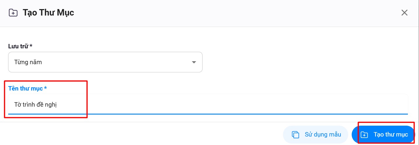 Nhập tên thư mục muốn tạo sau đó bấm nút Tạo thư mục