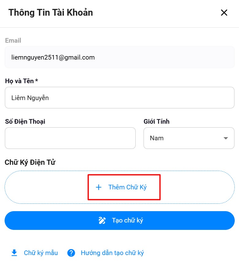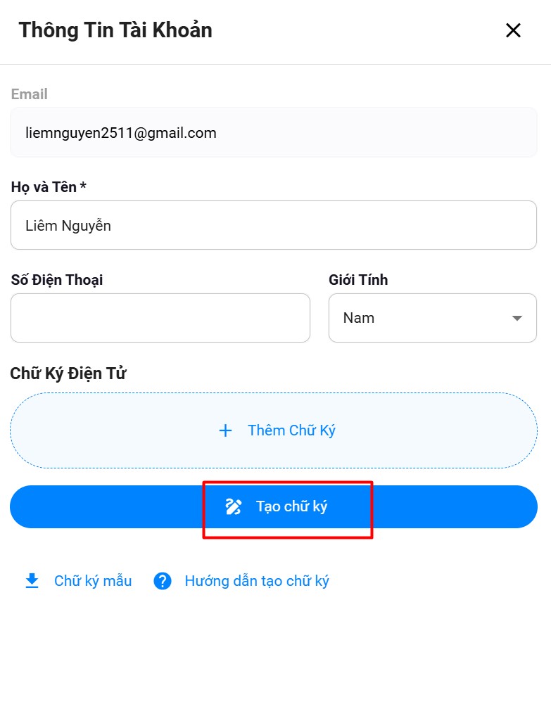 Cách 1: Tạo chữ ký trực tiếp trên phần mềm