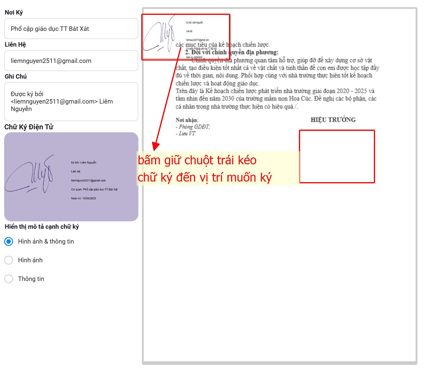 Bước 6: Kéo chữ ký đến vị trí muốn ký.