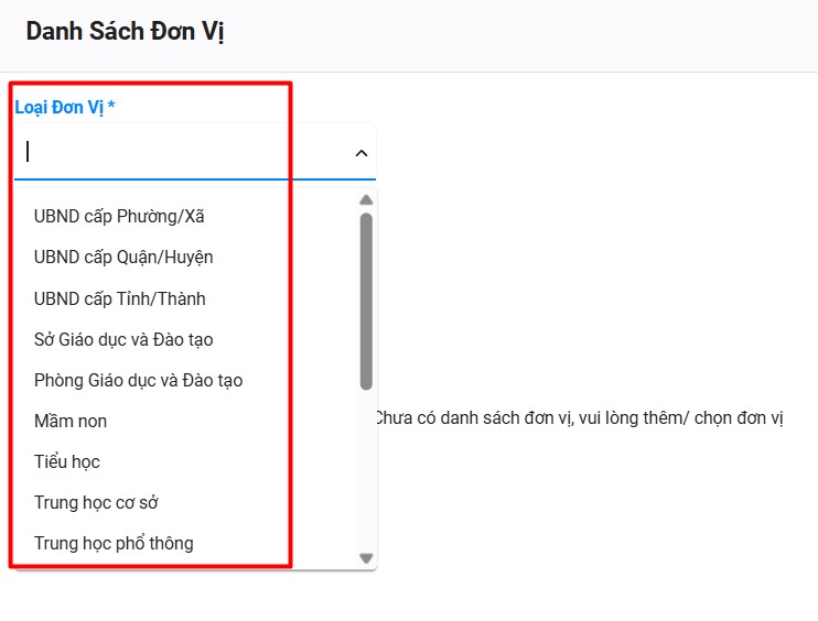 Bước 2: Chọn loại đơn vị muốn chia sẻ.