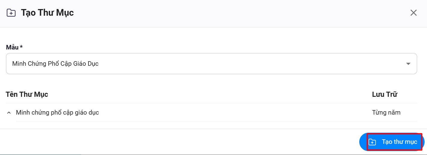 - Thầy/Cô thể thêm mới thư mục ngoài thư mục có sẵn bằng cách bấm nút Tạo thư mục
