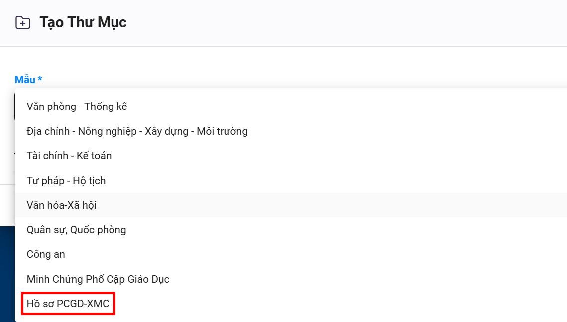 - Chọn loại thư mục cần lấy mẫu là Hồ sơ PCGD-XMC