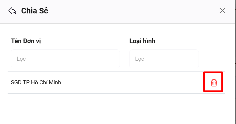 Lưu ý: Đơn vị được chia sẻ thư mục sẽ thấy các file trong thư mục, chỉ xem không có quyền xóa, thêm, chinh sửa
