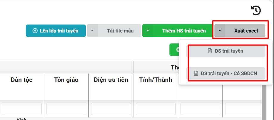 Bước 2: Bấm nút DS trái tuyến hoặc DS trái tuyến - Có SĐDCN nếu muốn danh sách có số định danh cá nhân.