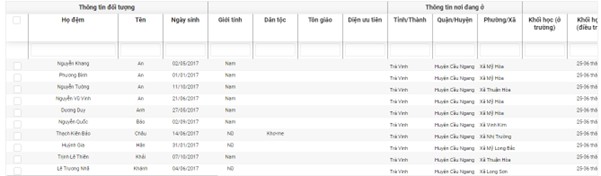 Sau khi nhập file excel vào phần mềm thành công sẽ hiện ra danh sách học sinh trái tuyến như hình dưới.