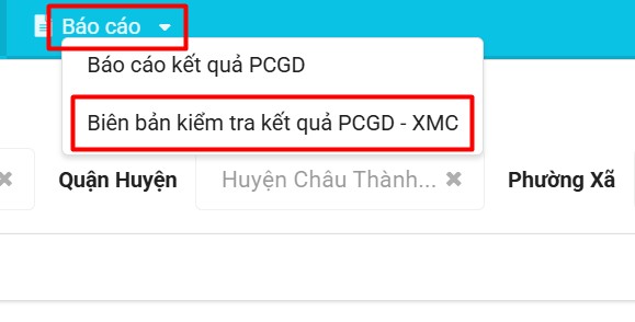 Bước 1: Vào menu Báo cáo => Biên bản kiểm tra kết quả PCGD-XMC