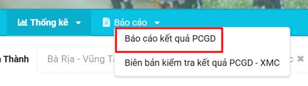 Bước 1: Vào menu Báo cáo => Báo cáo kết quả PCGD
