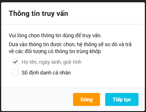 Sau đó bấm nút Tiếp tục, hệ thống sẽ trả về các đối tượng có kết quả trùng khớp