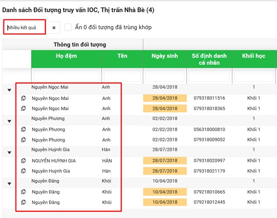 2. Ẩn/hiện đối tượng trùng khớp: đối tượng trùng khớp là đối tượng có ít nhất 1 đối tượng trả về khớp tất cả tiêu chí truy vấn.