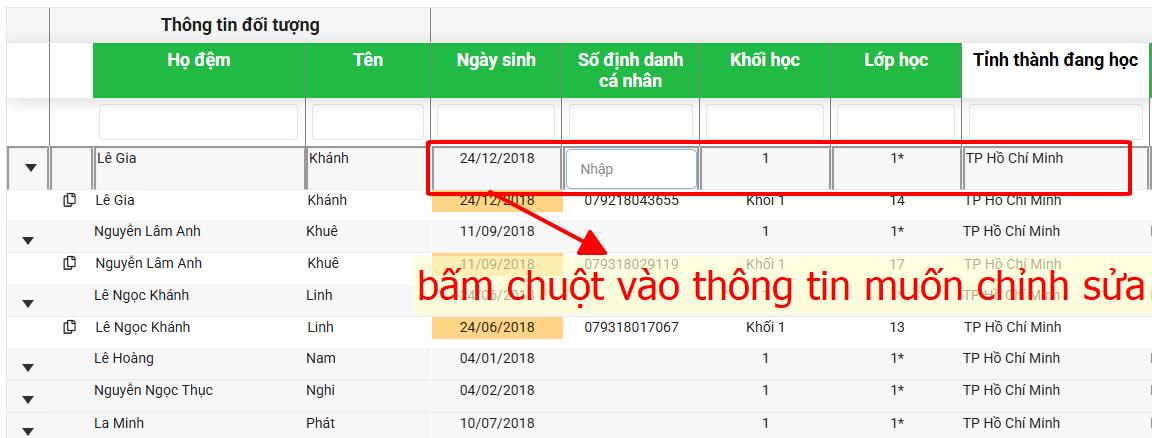 - So dò thông tin sau đó muốn bổ sung, sửa thông tin đối tượng điều tra thì thao tác trực tiếp trên lưới (như thao tác chỉnh sửa đối tượng điều tra)